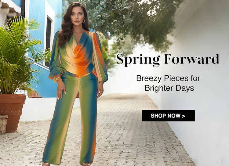 2 Pieces Outfit Cowl Neck Lace Spliced Long Sleeve Top and Elastic Waist Wide Leg Pants Set Casual Glitter Set