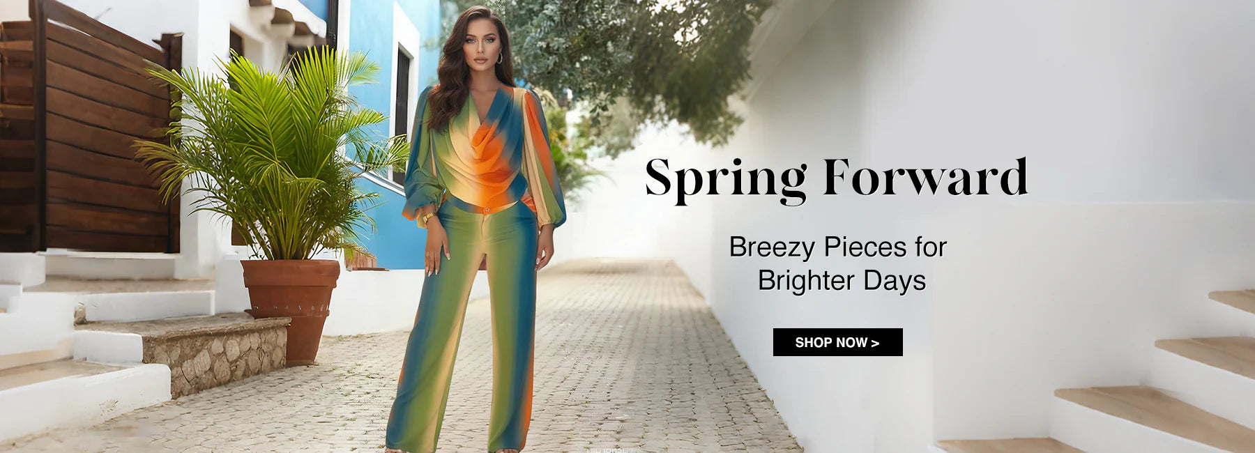 2 Pieces Outfit Cowl Neck Puff Sleeve Loose Fit Top and Zipper Fly Elastic Back Waist Wide Leg Pants Set Casual Tie Dye Print Set