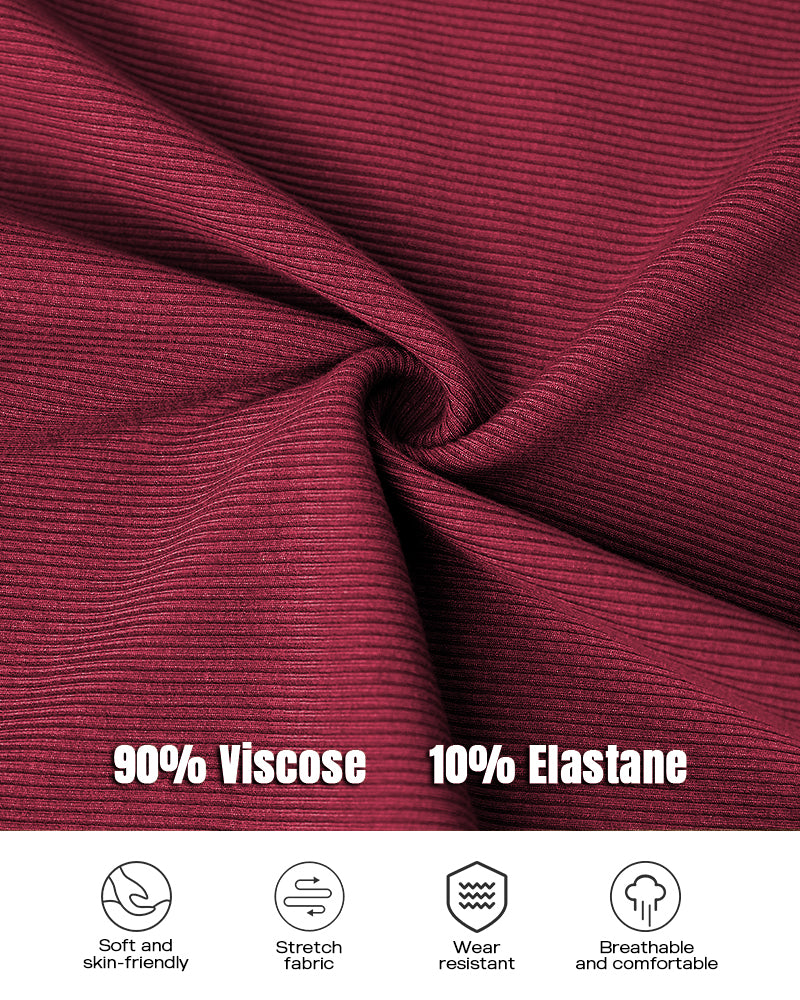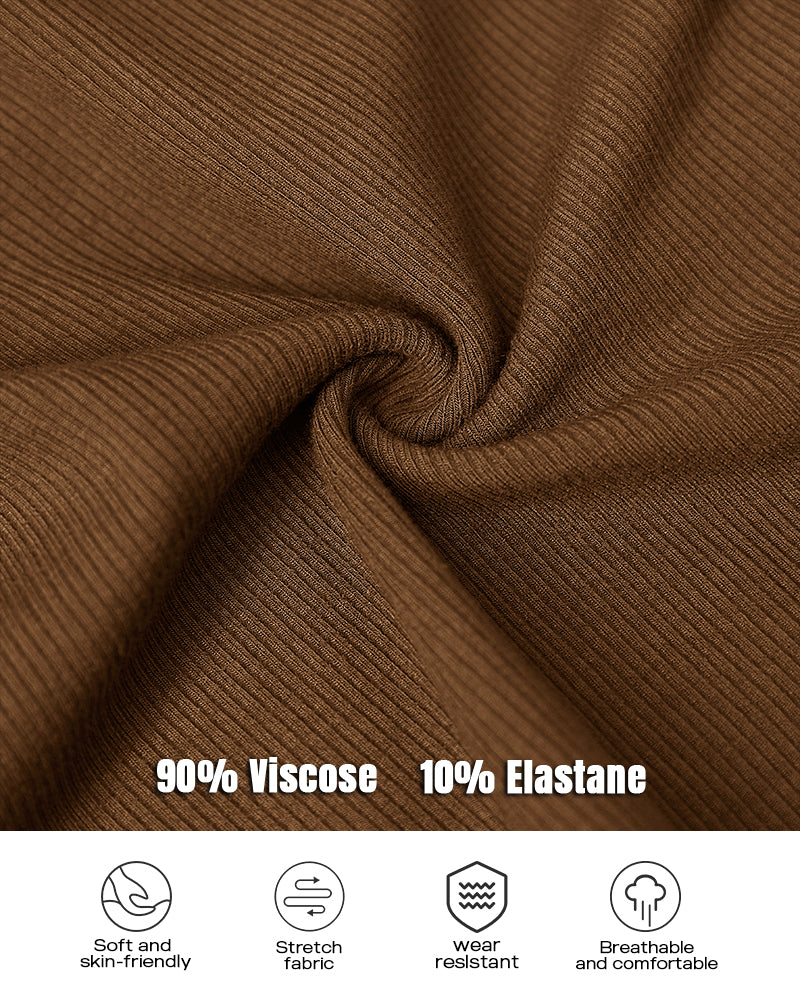 Stretchy and Comfortable Rib-Knit Fabric: Made from 90% Viscose and 10% Elastane, this long sleeve T-shirt features a soft rib-knit texture with natural breathability and flexibility, ensuring a comfortable fit that moves with you throughout the day.