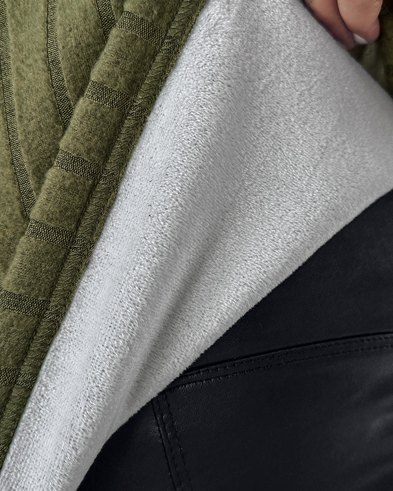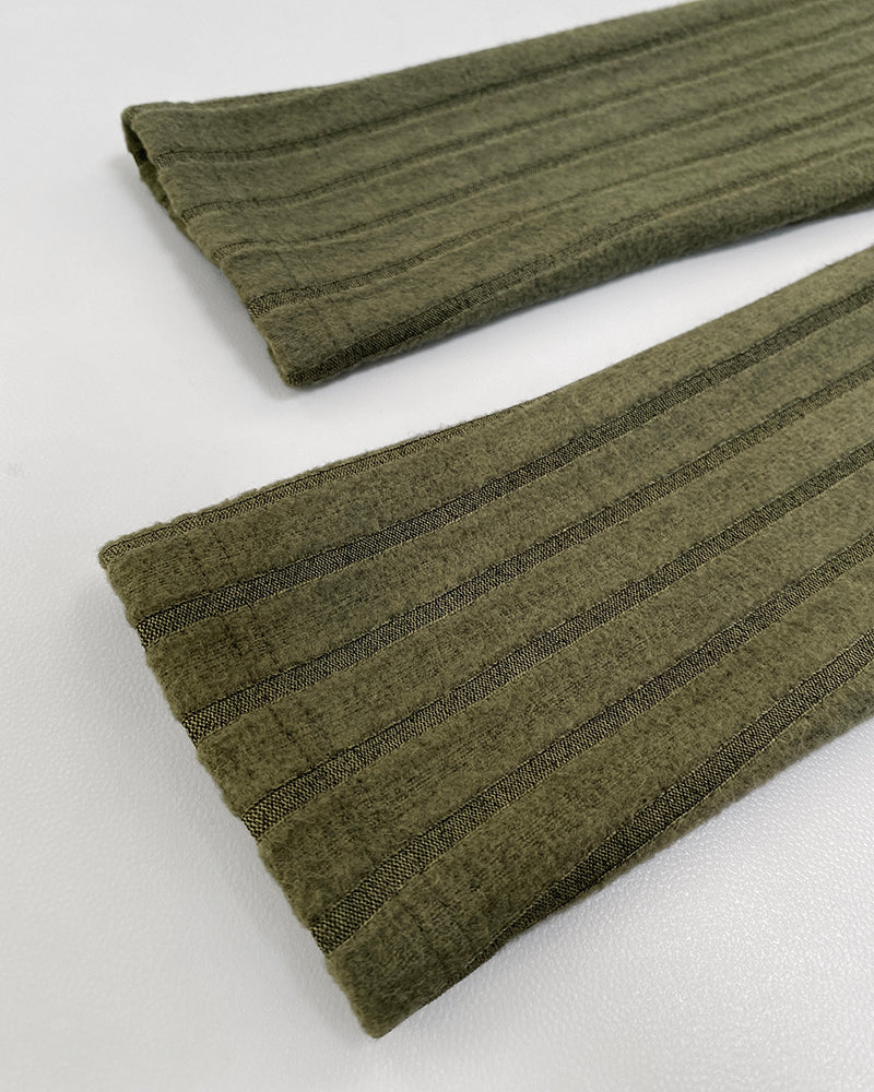 U-Neck Long Sleeve Ribbed Tops Fleece Lined Basic Layering Soft Thermal Tee (No Padding)